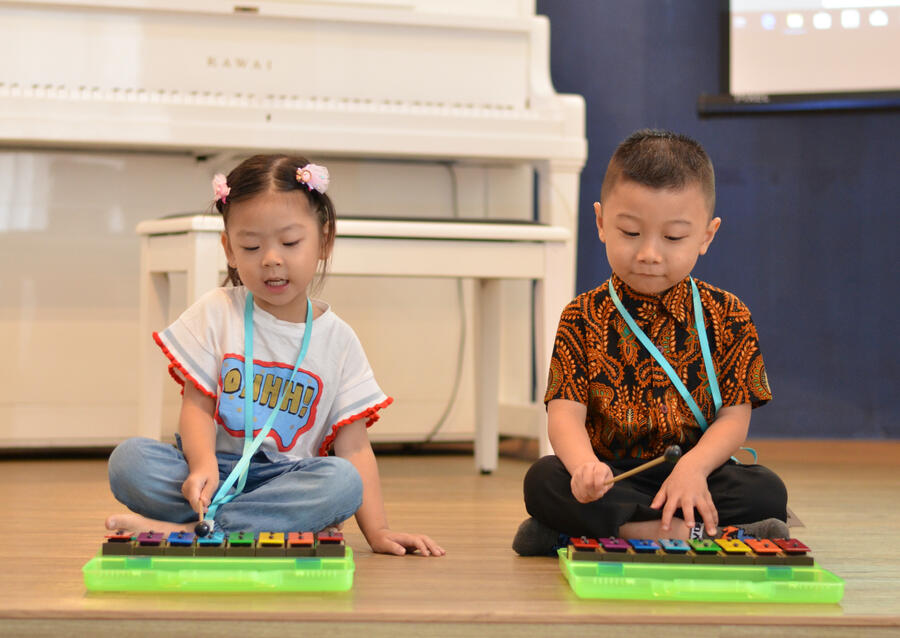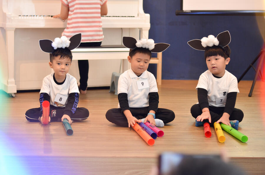 Kids at the age of 3-5 are curious, unconstrained and absorbent. It's the ideal age for learning music and they benefit the most from a group class setting.Group classes offer a learning environment that individual lessons may not, such as learning from peers by playing music together and by listening to each other.They also allow young children room for personal expression and developing social and communication skills.Our activities are stimulating and engaging. They organically build or train the confidence, discipline and sense of responsibility and teamwork that will serve our students well in life.The excitement and joy of sharing a stage with one's peers, performing as a real team, is a special experience that a young child will always remember fondly!