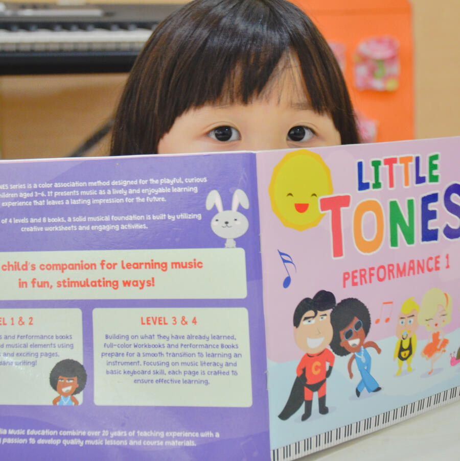 The first five years of a child’s life represent the golden period of development, and between three and five years of age, children continue to grow rapidly.Little Tones understands this. It takes the right incremental steps to ensure structured, age-appropriate and fruitful lessons over the course of 4 Levels, spanning 2 years.The Color-Method Levels I & II are the roots of music education, an investment for future learning. Absorb music fundamentals while developing social skills through fun, collaborative activities and performances.Continuing to Levels III & IV, students advance from playing percussions to the keyboard and learn more of the rudiments of music. Read and write black-and-white music notation, and already impress by playing it on the keyboard!The progressive lessons of Little Tones ease the transition to learning an instrument, as students have already acquired a strong general knowledge of music that will be applied to any future instrument studies. Learn now to save precious time in the future!